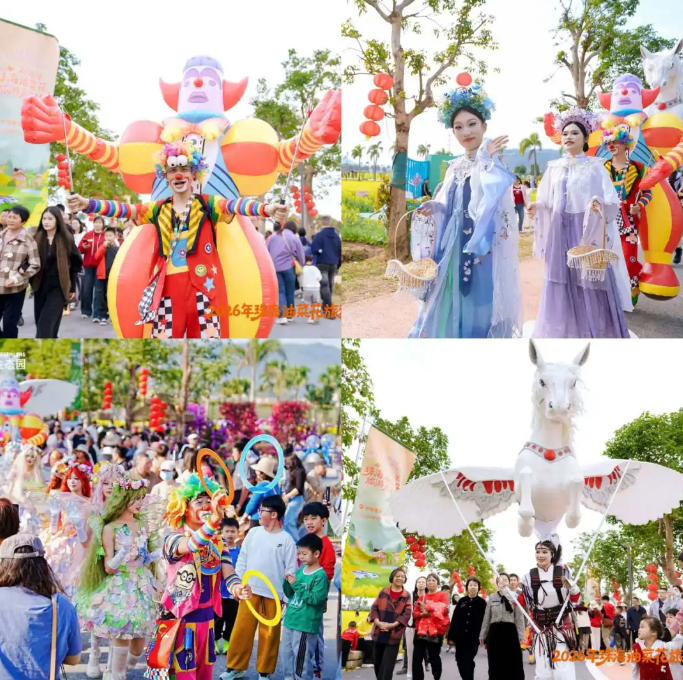 春节假期,这片花海持续引爆客流,大年初一单日入园客流量近3.8万人次,初二再迎2.6 万余名游客,假期前三天累计接待量突破10万人次,假期日均客流量约达2.5万人次,港澳游客成为主力客流,共同解锁珠海的生态年味。园区内,城市、国风、新春、田园四大主题美陈装置错落分布,一步一景皆是大片;新春市集里,大湾区地道好物齐聚,烟火气十足。花仙子巡游、大型飞马互动、花海小火车、马术骑行等丰富活动,让游客从 “观光者” 变身 “游园主角”,沉浸式感受农文旅融合的独特魅力。更值得一提的是,免费入园、免费停车的贴心福利,更让这片田园成为市民阖家出游的首。楹P麓何穆檬谐∽⑷肭烤⒒盍。